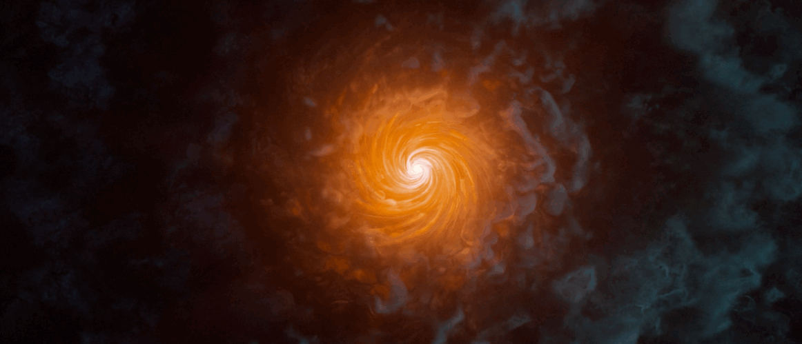 Εικόνα 1: Καλλιτεχνική αναπαράσταση της ύλης που στροβιλίζεται προς τα μέσα καθώς έλκεται από την ισχυρή βαρύτητα μιας κεντρικής υπερμεγέθους μαύρης τρύπας, σχηματίζοντας έναν «δίσκο προσαύξησης». Η τριβή θερμαίνει το υλικό του δίσκου, παράγοντας έντονο υπεριώδες φως (UV). Όταν υπεριώδης ακτινοβολία από το δίσκο συναντά την «κορώνα», μια περιοχή εξαιρετικά θερμού πλάσματος που φαίνεται να υπάρχει πολύ κοντά στη μαύρη τρύπα, επανεκπέμπεται με τη μορφή ακτινοβολίας Χ. Credit: Dimitrios Sakkas (tomakti), Antonis Georgakakis, Angel Ruiz, Maria Chira (NOA)
